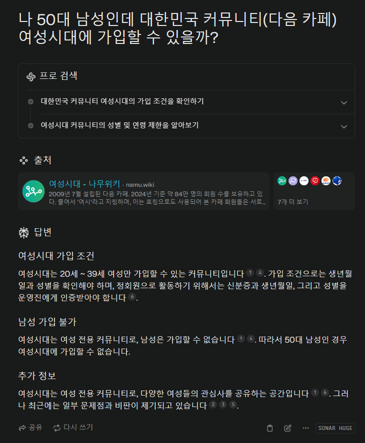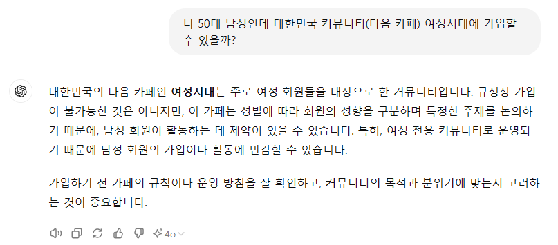 Q. 나 50대 남성인데 대한민국 커뮤니티(다음 카페) 여성시대에 가입할 수 있을까?