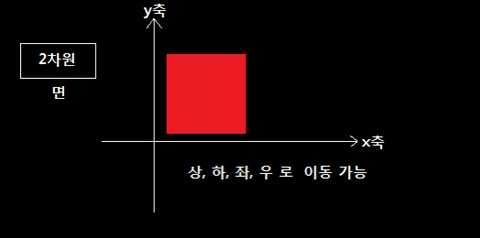 ▲ 2차원에서는 빨간 점이 좌우 뿐만 아니라 위 아래로 자유롭게 이동이 가능합니다.
