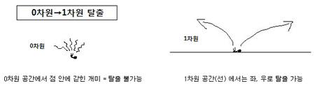 ▲ 0차원 공간(점)에 갇혀 탈출이 불가능했던 개미는