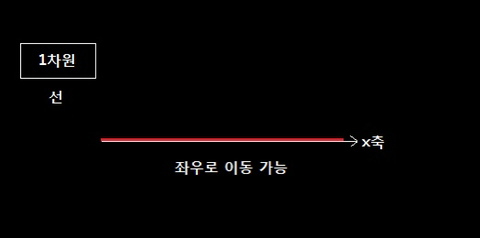 ▲ 1차원(선) 에서는 빨간 점이 좌, 우 방향으로 이동이 가능합니다.