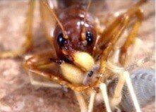 이에 독니를 세우고 경계를 하는 타란튤라