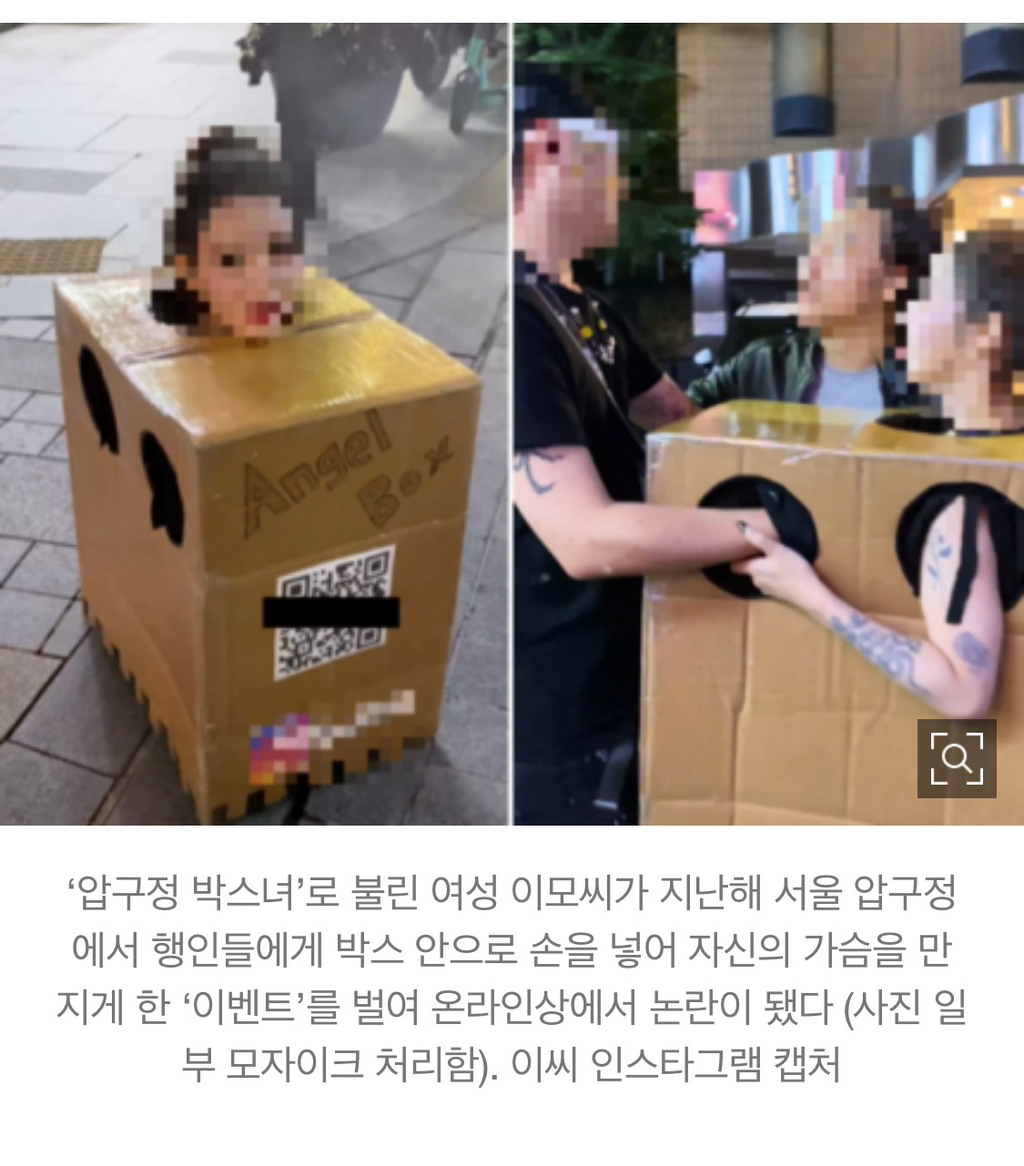 서울 번화가에서 알몸에 상자만 걸친 채 행인들에게 자신의 가슴을 만져보라고 했다가 공연음란 혐의로 기소된 20대 여성이 법정에서 혐의를 부인했다.