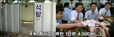 식당도 의원회관, 본관, 국회 도서관 등에도 있고 지금 리모델링하는 공사현장 함바집도 있습니다. 식당 가격도 다른 곳과 비교해서 저렴한 4,500원짜리 백반입니다. 지난번 최문순 의원 (현 강원지사)이 주최하는 '언론관련 간담회'에 갔더니 여기서 밥을 사주더군요. 사람이 워낙 많아서 밥을 제대로 먹지 못했지만, 이런 곳에서 국회의원이 밥을 사줘서 먹었다고 무어라 할 국민은 없습니다.