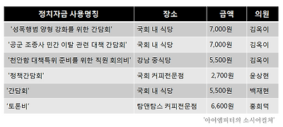정확하게 지출항목을 신고해야 한다고 해서 국회의원들이 신고한 내역을 보니 정말 가관도 아니었습니다. 아래 국회의원들이 지출한 명세서를 살펴보시기 바랍니다.