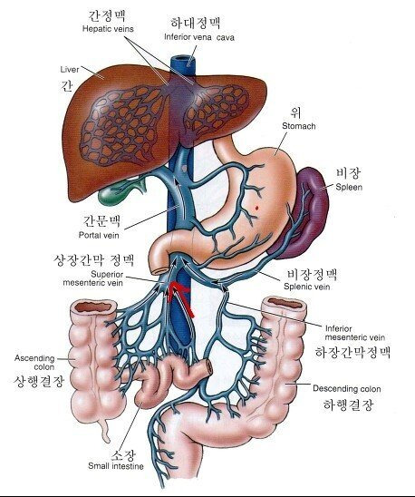간으로 통하는 혈관인 장간막정맥으로 이동한다.