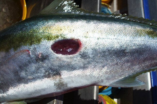 다만,이건 쿠키커터상어가 살을 뜯는 모습이