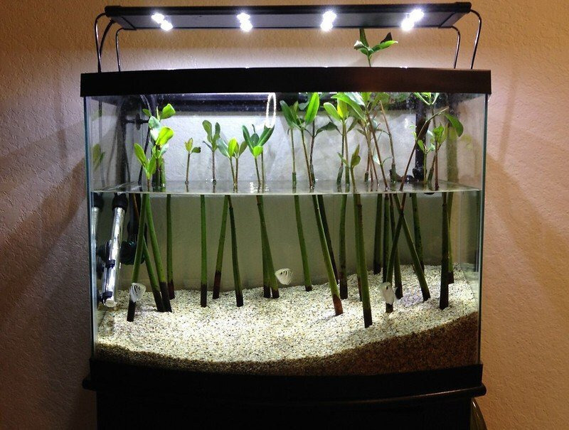 어항의 수위를 좀 낮추고 식물같은 것들을