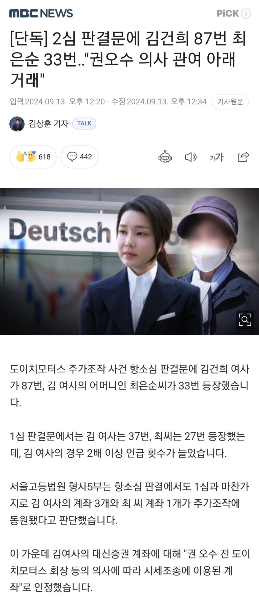 [스크랩] [여시뉴스데스크][단독] 2심 판결문에 김건희 87번 최은순 33번‥"권오수 의사 관여 아래 거래" 작성자사랑이 필요한거죠|작성시간24.09.13|조회수375 목록 댓글 0 글자크기 작게가 글자크기 크게가 https://naver.me/FqWIuMlI[단독] 2심 판결문에 김건희 87번 최은순 33번‥"권오수 의사 관여 아래 거래"도이치모터스 주가조작 사건 항소심 판결문에 김건희 여사가 87번, 김 여사의 어머니인 최은순 씨가 33번 등장했습니다. 1심 판결문에서는 김 여사는 37번, 최 씨는 27번 등장했는데, 김 여사의 경n.news.naver.com그래도 개돼지들아 어쩌라고~~ ㅋㅋ 다음검색 스크랩 원문 : 이종격투기 현재 게시글 추가 기능 열기 북마크 공유하기 신고 센터로 신고 댓글 댓글 0 댓글쓰기 답글쓰기 댓글 리스트