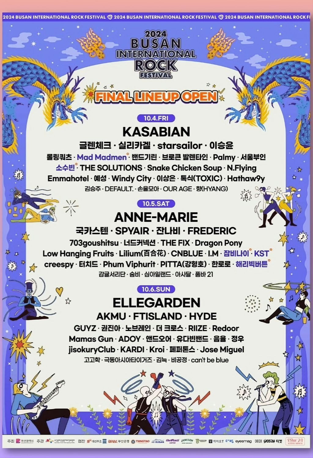 + 변동사항으로는 원래 토요일 라인업에 있던 노라조메탈헴들 출연 취소라네여