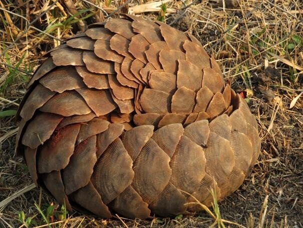 천산갑은 적이 나타나면 몸을 둥글게 말아서 약한 속살은 집어넣고 비늘을 노출시켜 방어하는데,