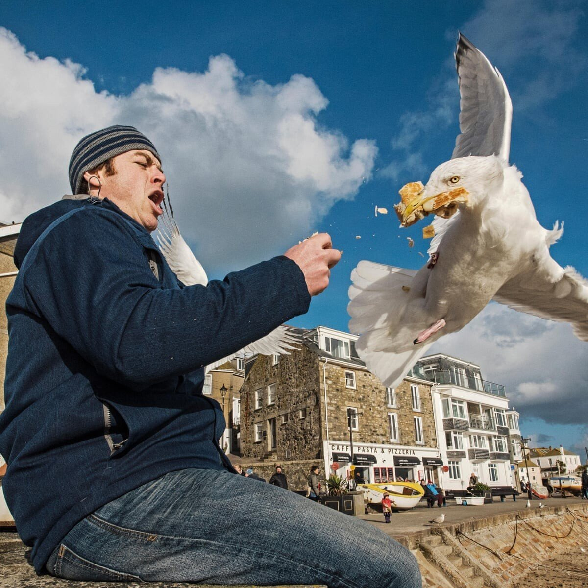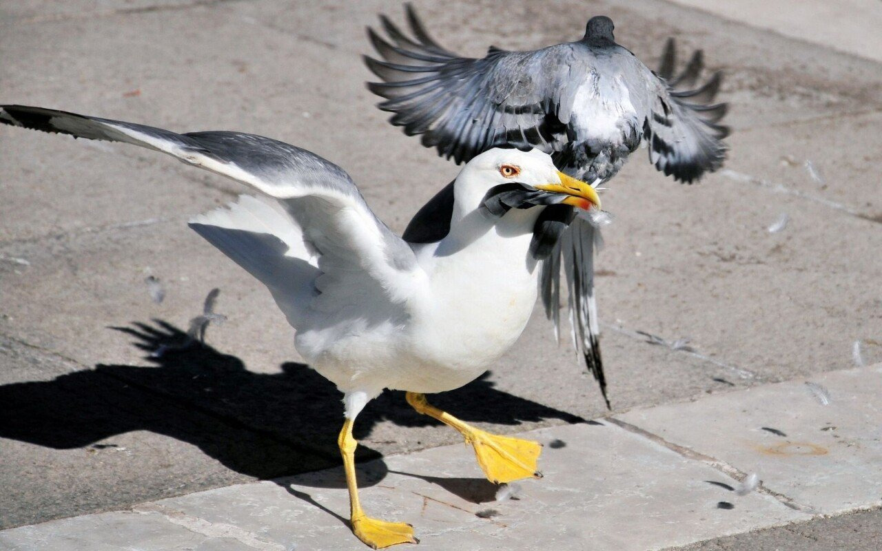 유럽의 공원에선 갈매기들이 날아와서 자신들보다 작은 비둘기를 사냥해 꿀꺽꿀꺽 삼키는 모습을 의외로 쉽게 볼 수 있다.