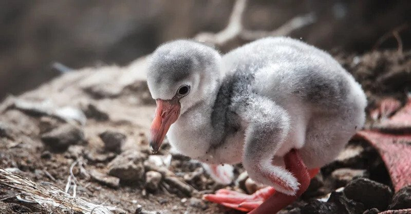 하지만 사실 플라밍고는 붉은색이 아니라 회색 깃털을 가진 새다.플라밍고의 새끼들을 보면 단 한 마리도 붉은색의 개체를 찾아볼 수 없다.