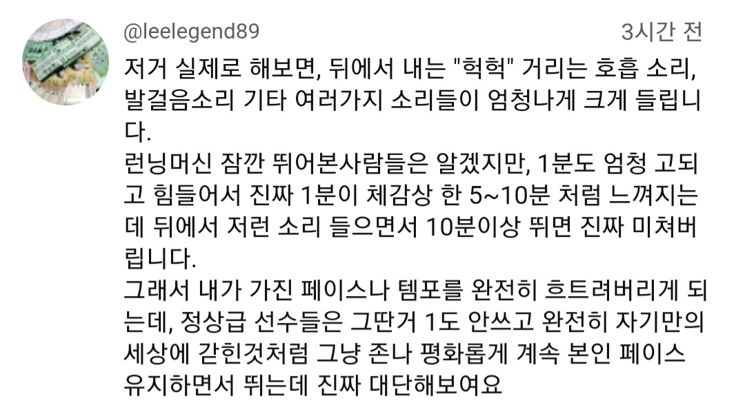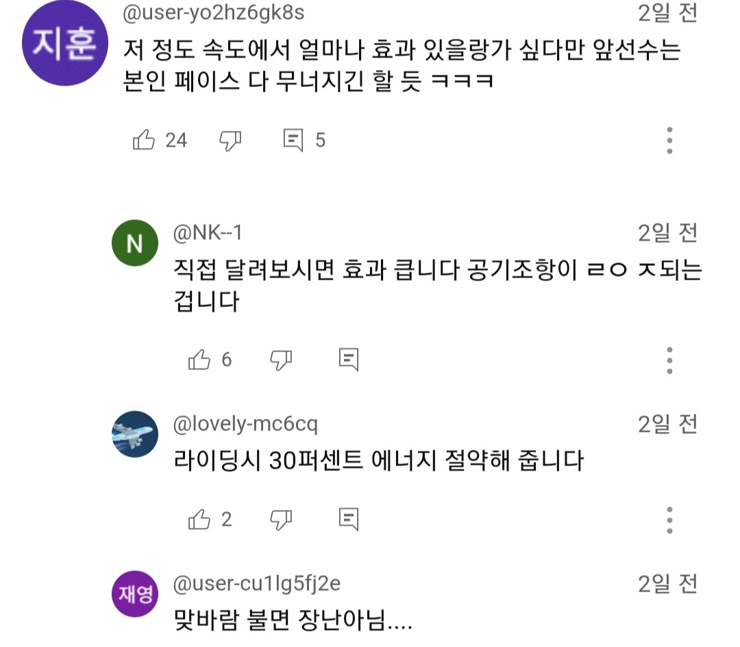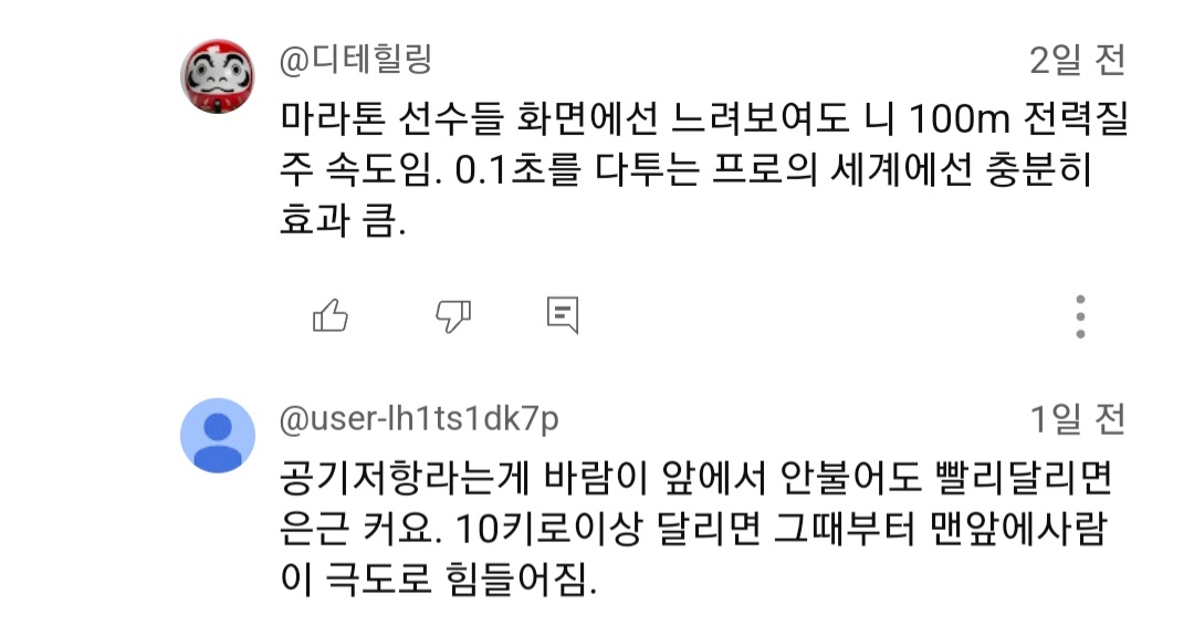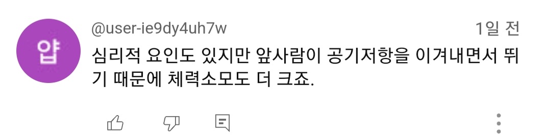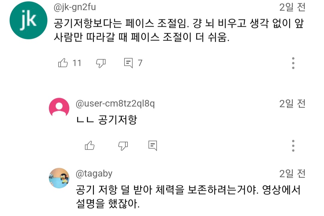 몇시간씩 뛰는 거리상 공기저항 은근 무시 못한다고...