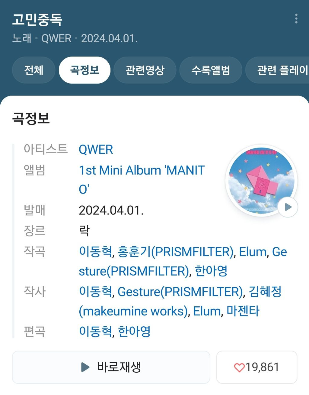 Qwer 고민중독 작곡 참여한 Elum이라는 작곡가