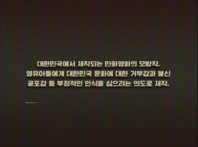 북한에서 우리나라 만화영화를 모방하여 일부러 뒤틀리게 만든 후, 중국을 통해 청계천 등지에 불법으로 유통시킨다는 것이 이 영상이 세상에 알려지게 된 계기임