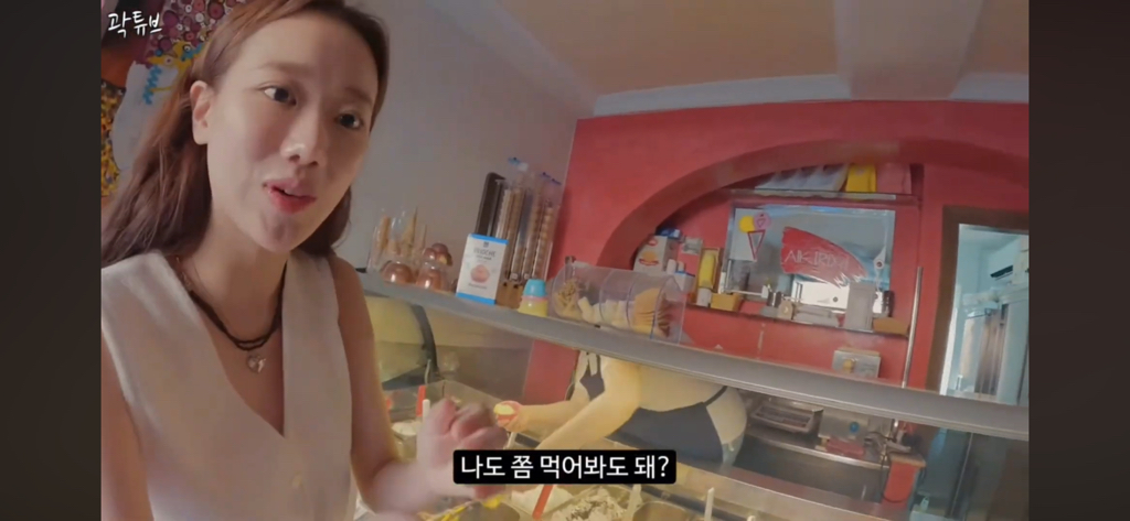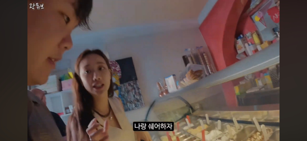 곽이 먹은 아이스크림 한번 먹어봐도 되냐하고 그대로 입에 넣고
