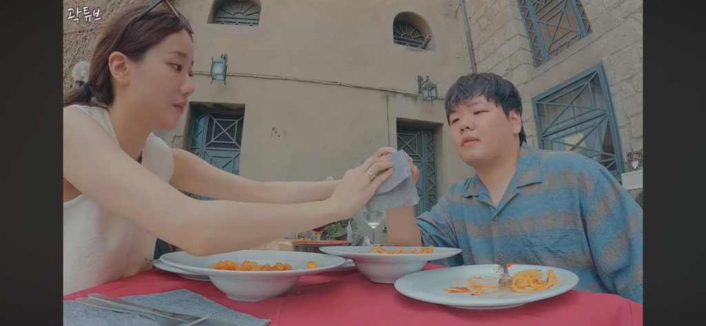 곽 손에 뭐 묻었다고 갑자기 휴지 들고 손 닦아줌