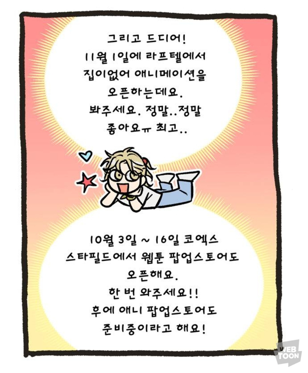 작가님 완결 후기에 애니메이션 공개 날짜가 뜸!