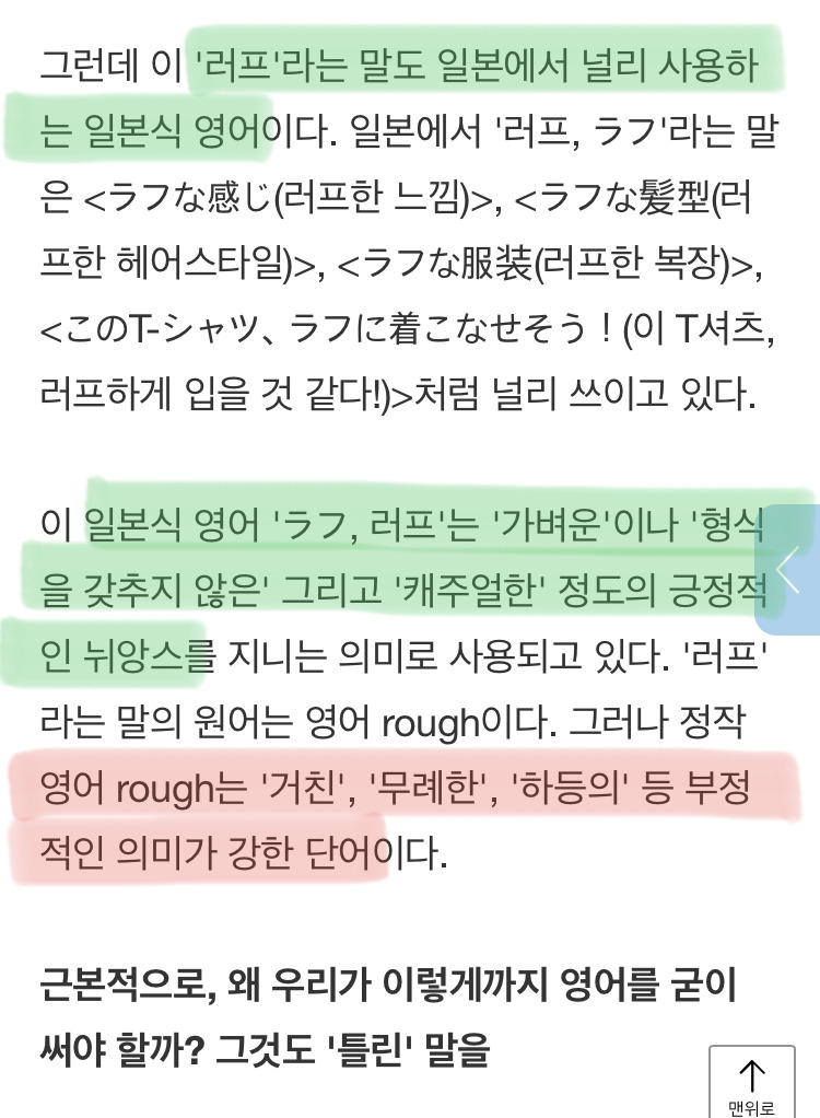 답댓글 작성자주기적플초중 작성시간 24.09.18 나도 이 말하려 했는데 본문 읽으니까 뉘앙스가 좀 다른거 같기도 하나...? 근데 러프한 기준도 setting up a rough set of standards 이런 식으로 가능해서 맞는거 같기도 하고... 러프하게 모인것도 rough meeting on work distribution among us 이렇게 쓸 수 있어서 잘 모르겠다