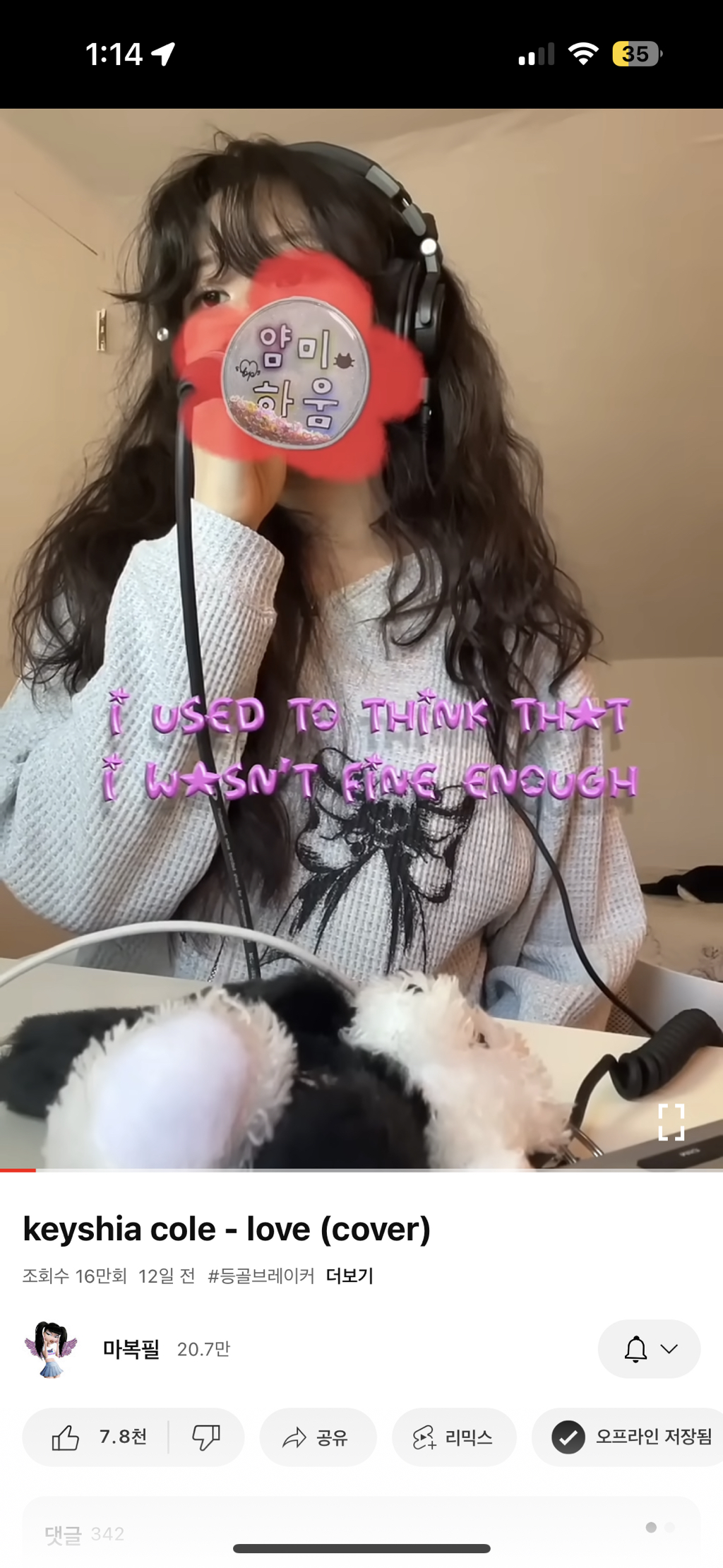 브이로그랑 커버곡 불러서 올리거든 ?????