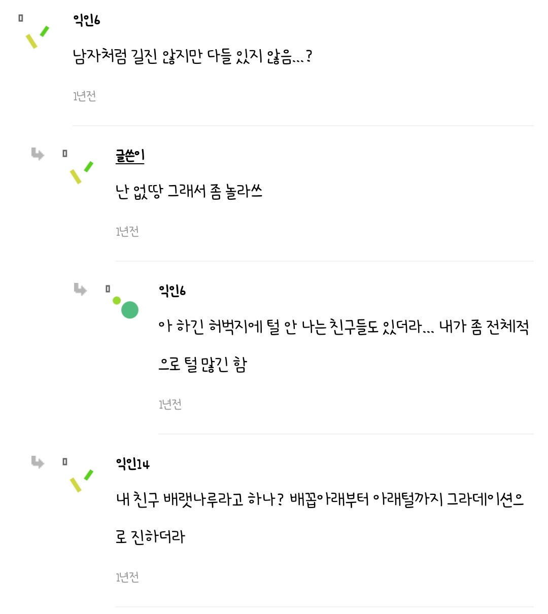 작성자동물을사랑함 작성시간 24.09.20 그런 애들 있던데? 내 친구도 저런데 아빠가 털 많으시더라 가슴털도 있으시고 ㅋㅋ