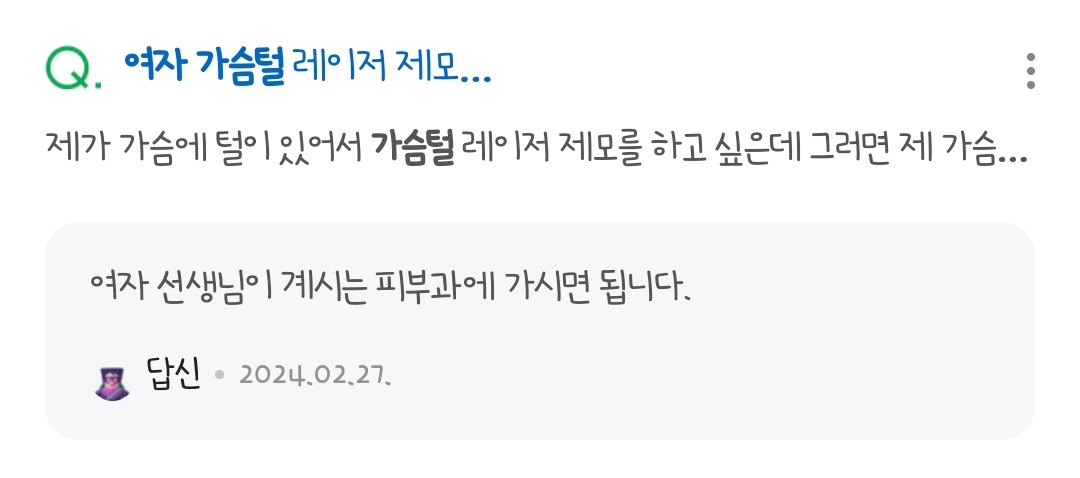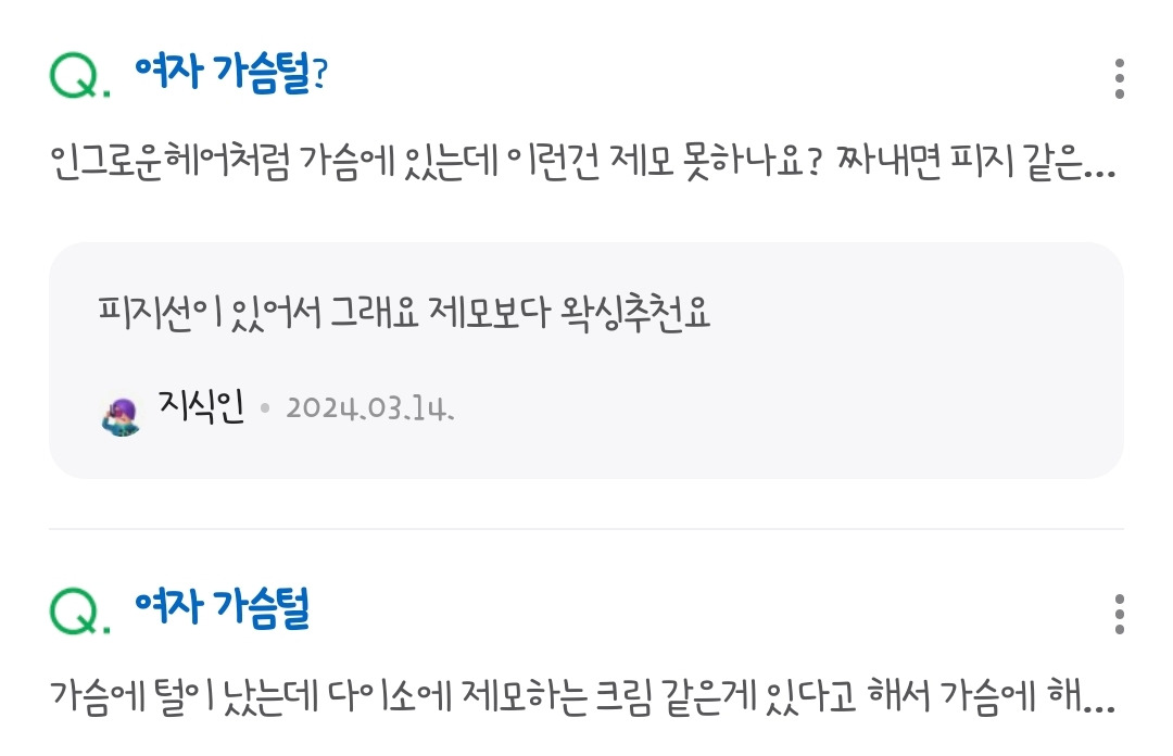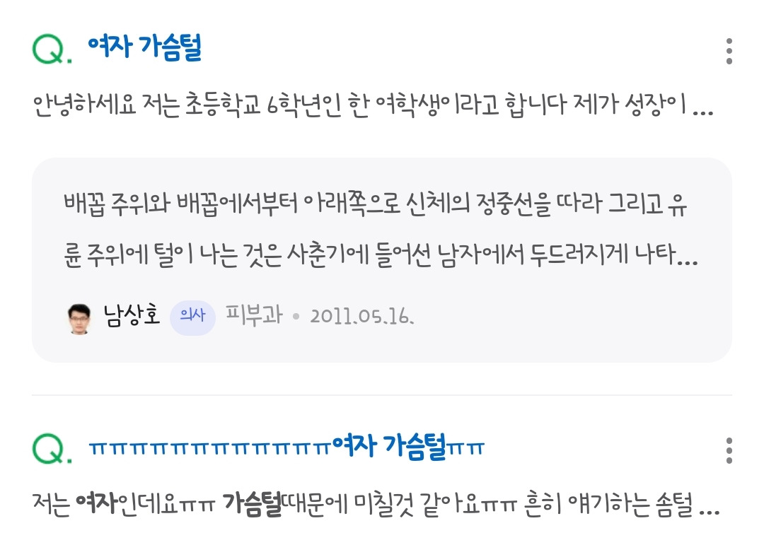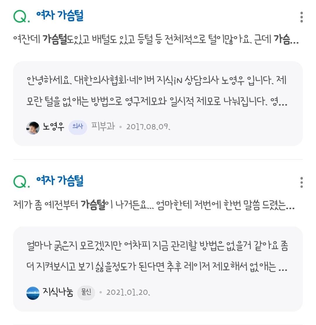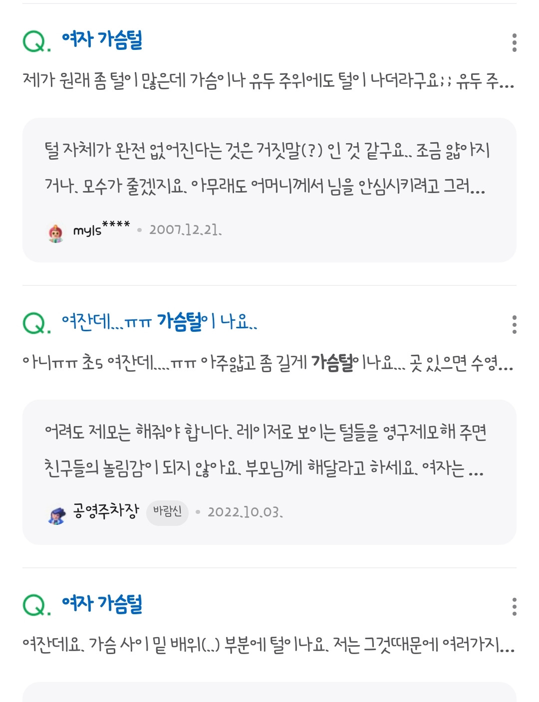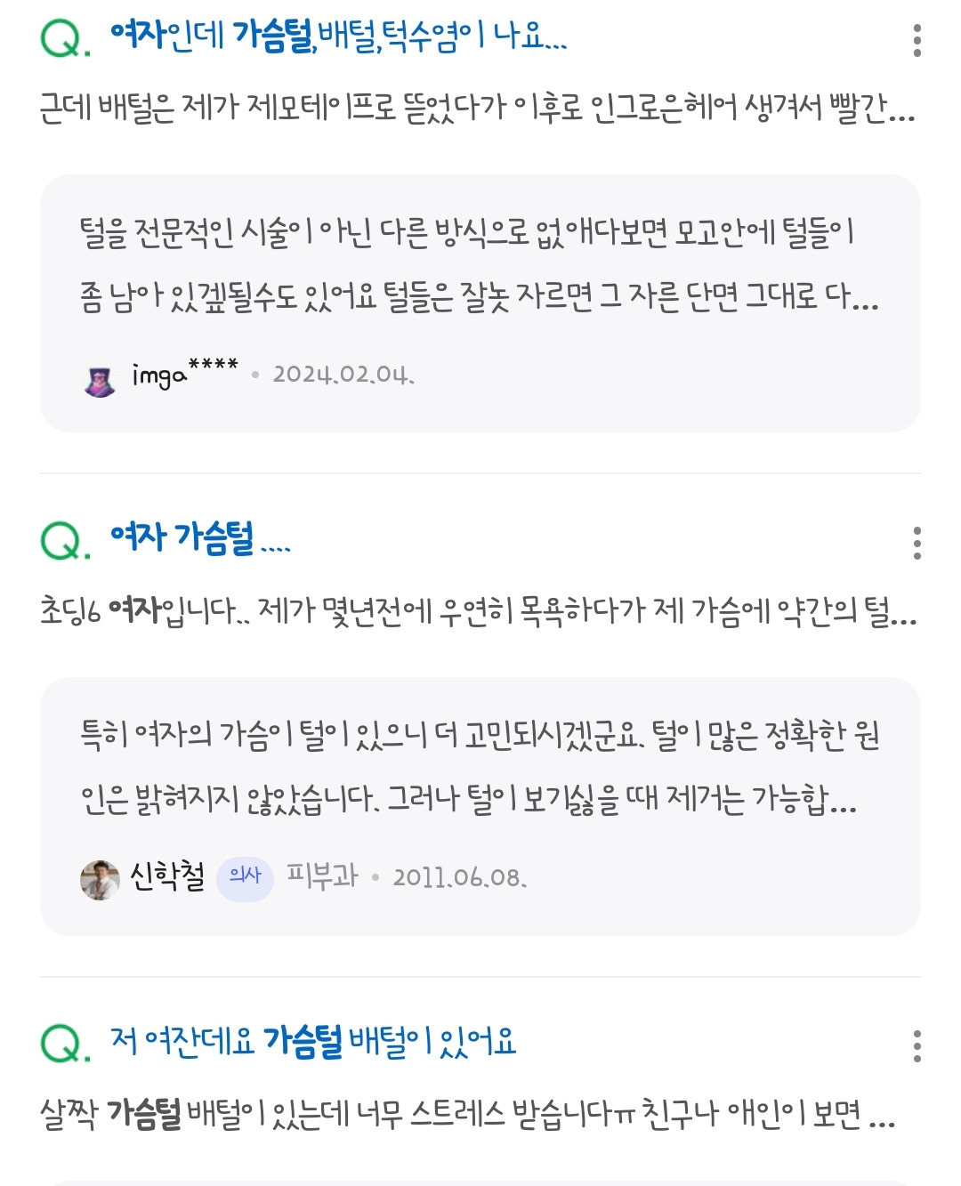 가슴털은 솜털보다 약간 더 굵은데 뽑아도 계속나드라