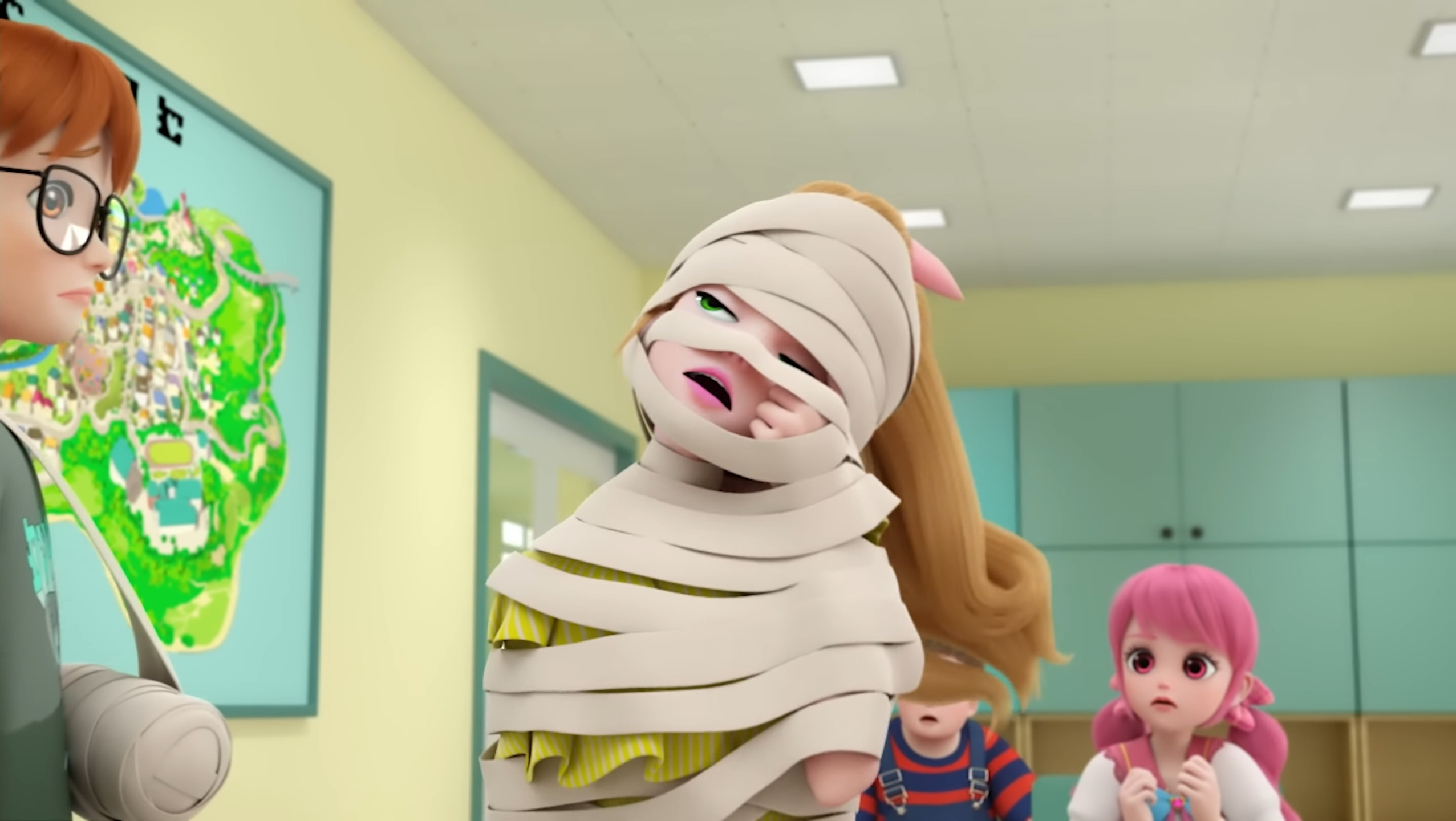 로미는 아프지도 않은데 삐뽀핑이 악당의 목소리에 홀려서 치료하러 옴