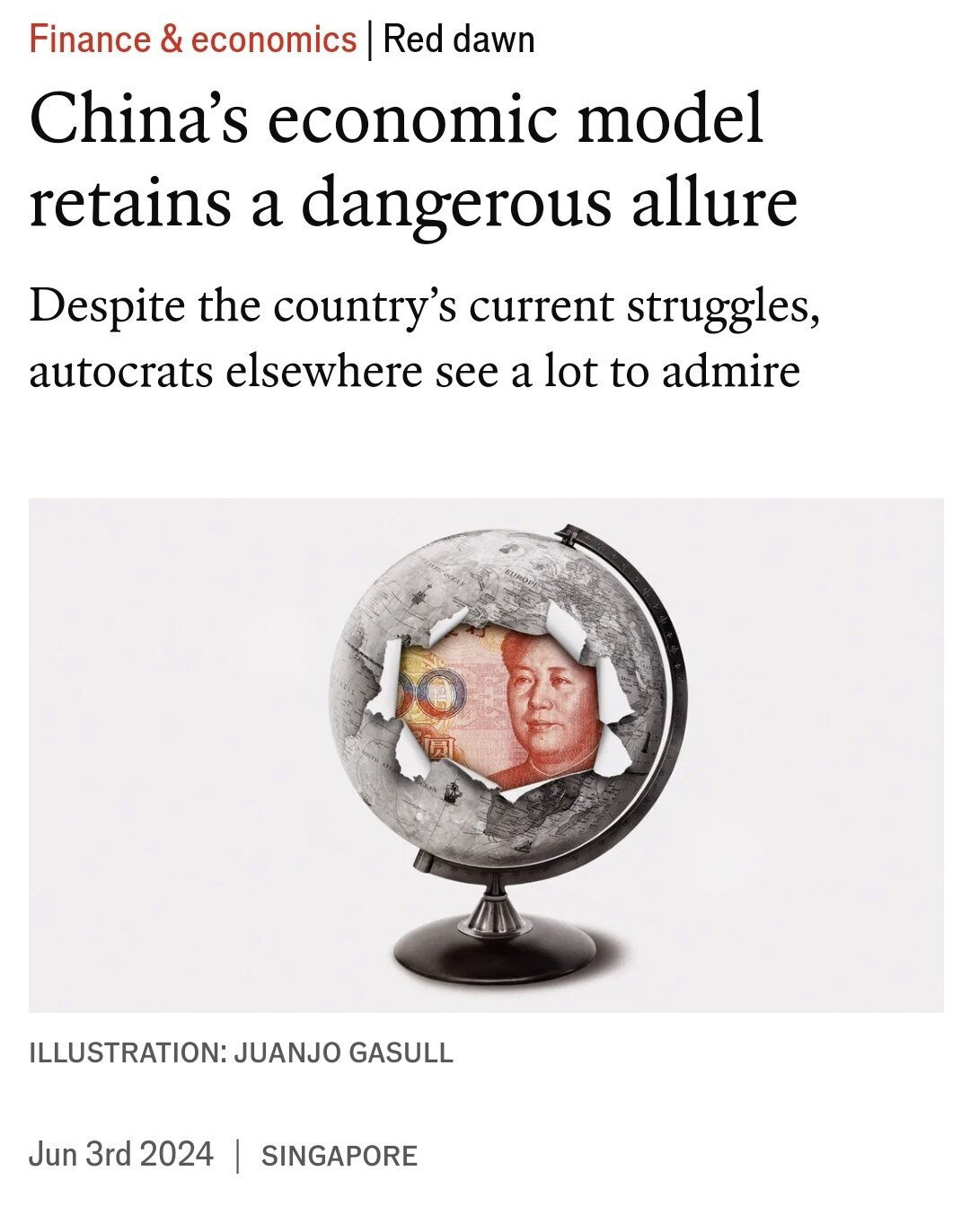 몇달전 이코노미스트에서 중국 경제 모델을 그 위험성에도 불구, 여러 개발도상국들이 본받을 모범 경제모델로 추종한다는 글이 올라옴.