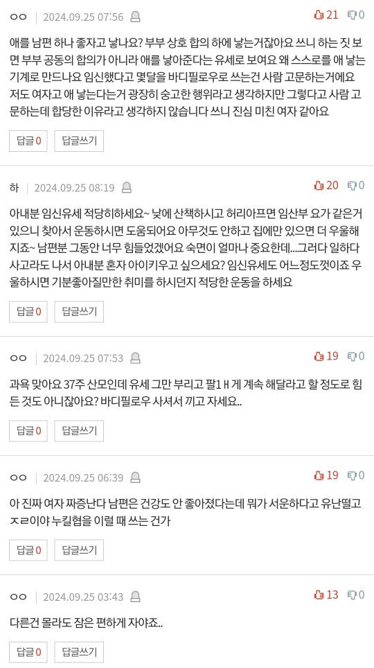 작성자고노도로모 작성시간 24.09.27 임신하면 호르몬이 저렇게 만든다는글을 봤는데...안그러던사람도 사고의 흐름이 이상하게 흘러가니 더더욱 임신안해야겠다