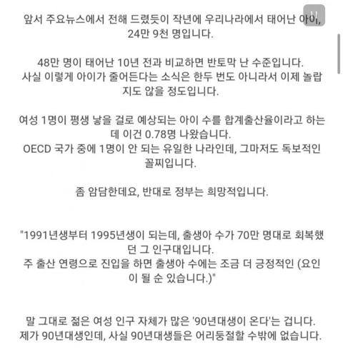 정부가 자꾸 90년대생에게 출산율 기대하는 이유
