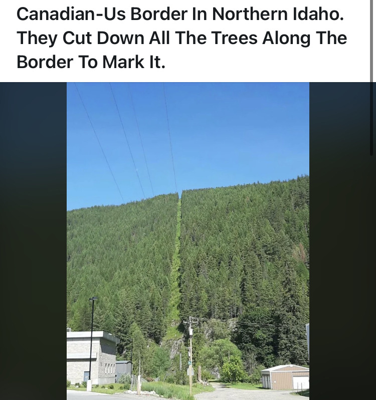 출처 https://www.reddit.com/r/interestingasfuck/comments/y3x6sq/canadianus_border_in_northern_idaho_they_cut_down/