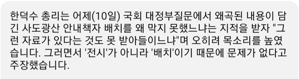 [스크랩] [여시뉴스데스크]한덕수, '반도인 재능 낮다' 왜곡 책자 배치에…"그거를 못 받아들입니까?" 작성자천리길|작성시간24.09.26|조회수750 목록 댓글 4 글자크기 작게가 글자크기 크게가 출처: https://m.youtube.com/watch?v=M23HJeZ5b8M 다음검색 스크랩 원문 : *여성시대* 차분한 20대들의 알흠다운 공간 현재 게시글 추가 기능 열기 북마크 공유하기 신고 센터로 신고 댓글 댓글 4 댓글쓰기 답글쓰기 댓글 리스트 작성자사건은다가와앗오에 | 작성시간 24.09.26 아이엠그라운드 덕수 소개하기 작성자강물이되어흘러흘러 | 작성시간 24.09.26 일본인 작성자노란해바라기 | 작성시간 24.09.26 니가 제일 작성자shineonme | 작성시간 24.09.26 자국민 보호 할줄도 모르고 대놓고 모욕을 하는데도 저따위 말을 하고 앉아 있는게 총리라니ㅋ 할배 노망 났음 걍 방구석에서 손주나 봐요ㅡㅡ 짜증나게 기어나오지 말고 댓글 전체보기