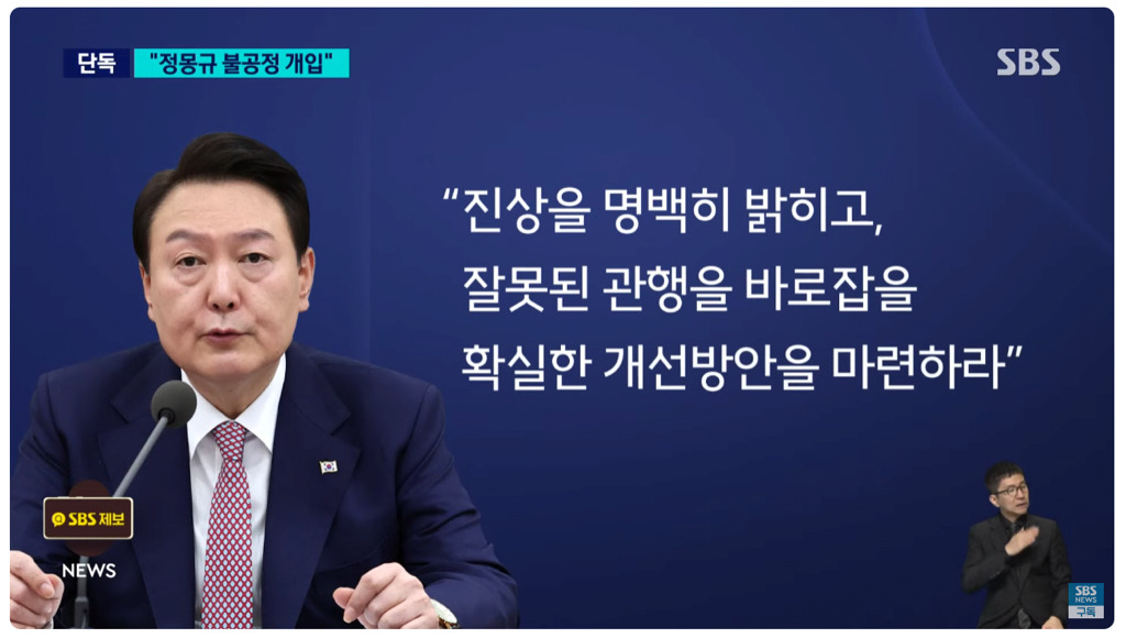 [여시뉴스데스크]윤석열 대통령 "정몽규, 클린스만 선임때도 부당개입" 진상규명 지시 작성자최욱|작성시간24.09.30|조회수887 목록 댓글 5 글자크기 작게가 글자크기 크게가 출처:https://youtu.be/9ba7p65hS0k?si=CBszC0fWFbH5jWx5 다음검색 현재 게시글 추가 기능 열기 북마크 공유하기 신고 센터로 신고 댓글 댓글 5 댓글쓰기 답글쓰기 댓글 리스트 작성자홍시흐옹시 | 작성시간 24.09.30 축구에 갑자기..? 작성자손웅정여시 | 작성시간 24.10.01 진짜 갑자기긴 하지만.... 정몽규랑 홍명보 나가라 작성자조쉬하트넷 | 작성시간 24.10.01 ㅅㅂ ㅋㅋㅋ 니나잘해 작성자자색고구머 | 작성시간 24.10.01 축협에도 뭐 받아처먹을라고 염병떠나 작성자선배릠탕후루 | 작성시간 24.10.01 축빠인가 대통령이 저리 나설일인가 ㅋㅋ 나서야할 일에는 안나서고 댓글 전체보기