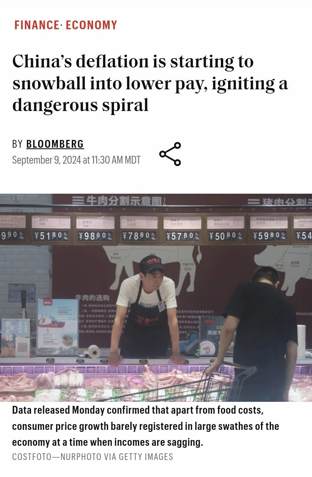 1. 중국이 사상 최악 디플레이션으로 임금이 10% 감소인데 아직 1만달러 개도국에 8년내 노인 4억명 초고령화라서 선진국도 못되고 잃어버린 30년 겪는거 아니냐 얘기 나오는중.