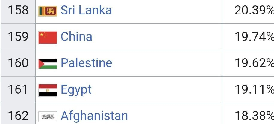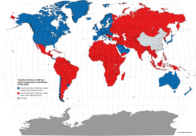 [ 중국보다 못사는 국가들 : 빨강색 ]