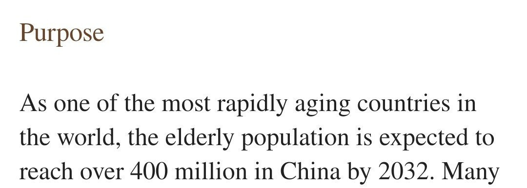 그리고 일본보다 빠른 고령화 속도에 2032년에 노인 인구 4억으로 8년내 세계 최대 노인 보유 국가가 될 거라는점.