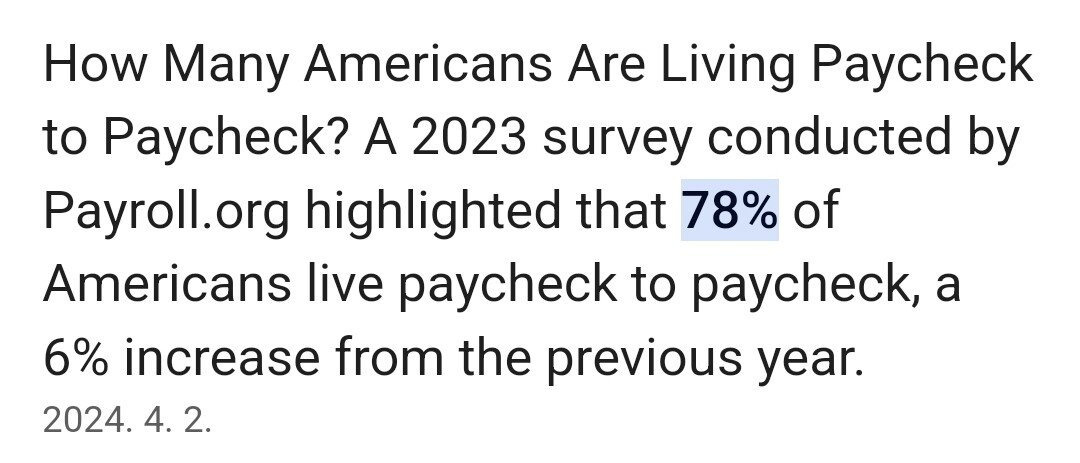 78% 이상의 미국인들이 저축없이 한 달 벌어 한 달 쓰며 살아가는중임.