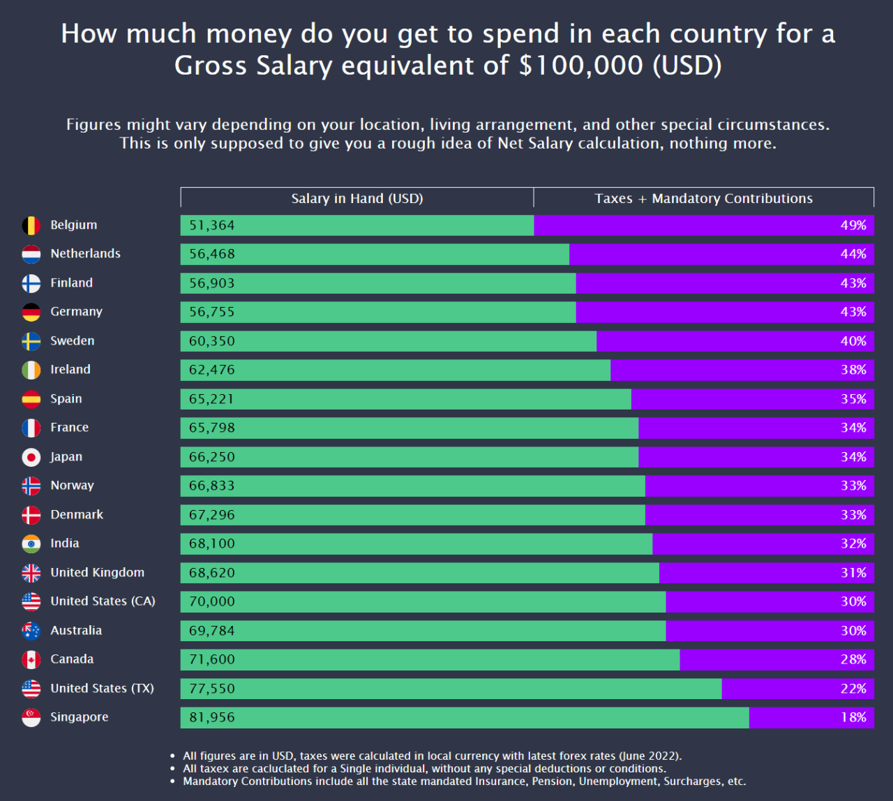 [ 세전 연봉 1억 3000만원을 벌 경우 세후 남는 액수 : 초록색 ]