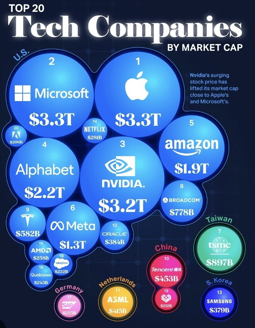 [ 세계 20대 테크 기업 규모: 그나마 유럽 최대 플랫폼 기업인 SAP는 세계 단위에선 매우 작다 ]