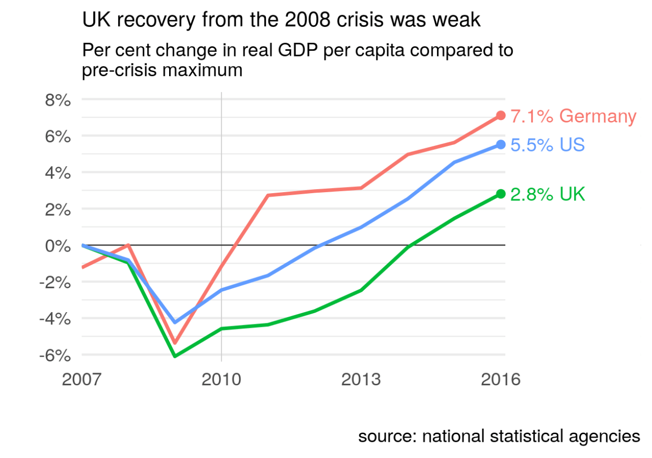 그렇기에 2000년대초까지 독일은 유럽의 병자라는 별명을 얻으며 생산성 부진과 경제 성장률이 오르지 않는 이중고를 겪게 됨.