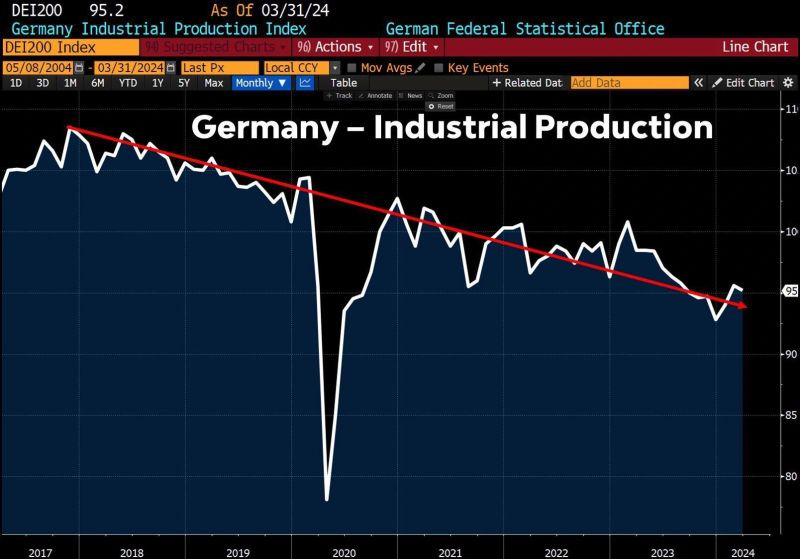 [ 하락하는 독일의 산업 생산 ]