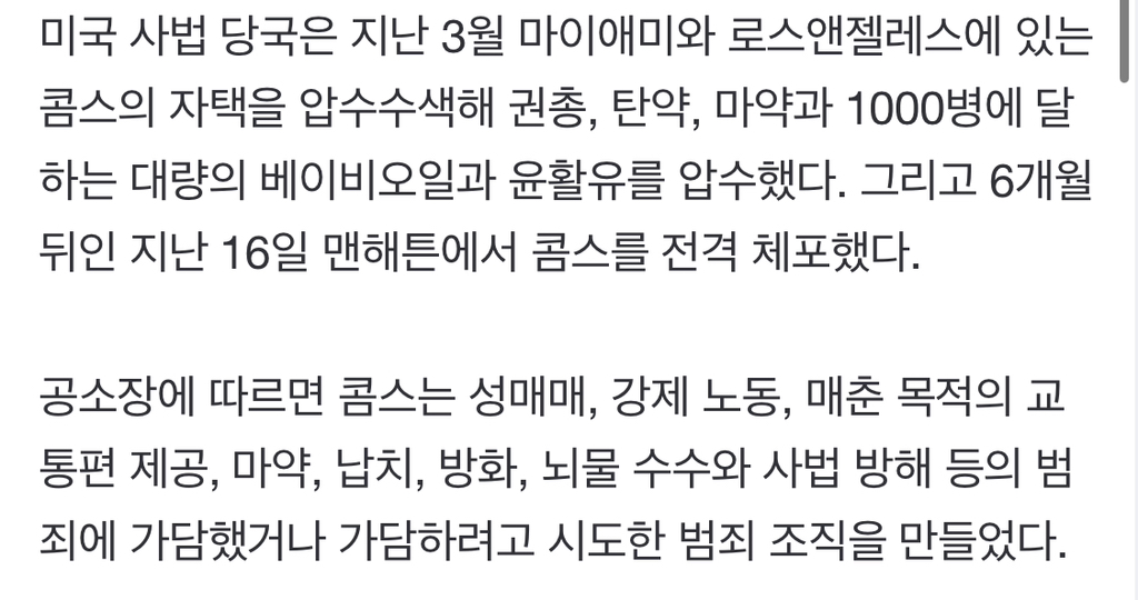 하반신에 수건만 두른 디디가 호텔 복도 존나 뛰어와서 여친을 바닥에 패대기치고 걷어차고 물건 뺏는 영상임;; 조작아니고 디디가 직접 사과 영상까지 올렸던 일임…. 제일 위에서 피해자 120명이라 했지만 그것도 현재 현재 소송건 사람들 숫자지 사실은 셀 수도 없을거라고 함 또 특히 미성년자 백인 남자들을 노예처럼 부리는 거 좋아한단 폭로도 뜸.