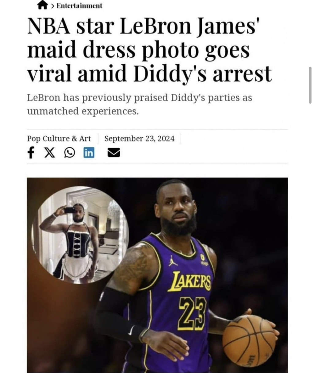 또 지난 5월 르브론 제임스가 1000억 받고 디디랑 잤다는 주장이 나왔음 (저 메이드 사진 가짜다 찐이다 말도 많아서 이건 진실인지 모름)