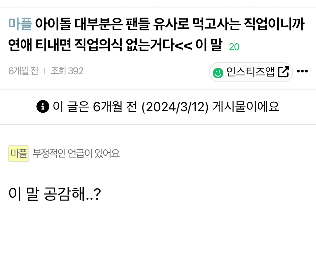 작성자산마늘 작성시간 24.10.04 연예인이 이미지 장사인데, 학폭이나 사회면 오르락 내리락 하는건 버티는 팬심이 연애하면 식는 알고리즘이 이해가 안됨