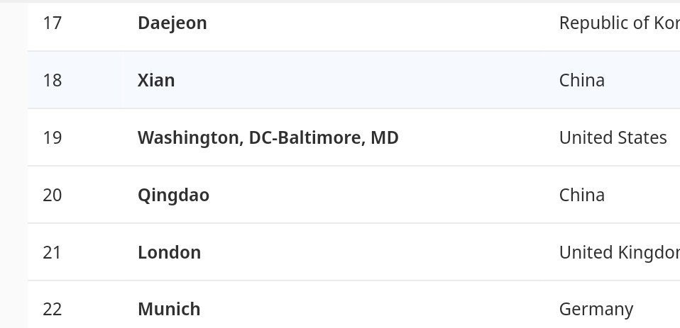 영국 최대 과학기술 클러스터인 런던은 21위, 독일 최대 클러스터인 뮌헨이 22위로 4위인 서울은 커녕 17위인 성심당으로 유명한 대전보다 못함.