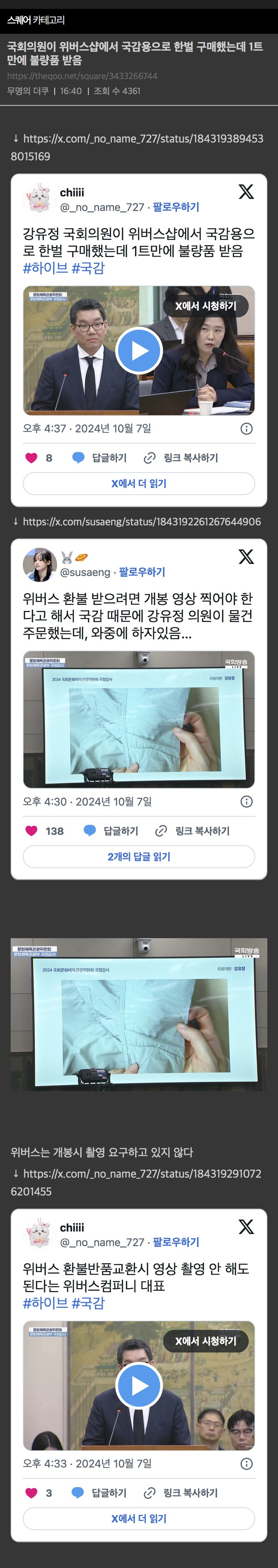 [칵.cxxx]국회의원이 위버스샵에서 국감용으로 한벌 구매했는데 1트만에 불량품 받음 작성자COCOAo|작성시간24.10.07|조회수11,157 목록 댓글 18 글자크기 작게가 글자크기 크게가 출처: https://theqoo.net/square/3433266744더쿠 - 국회의원이 위버스샵에서 국감용으로 한벌 구매했는데 1트만에 불량품 받음여기를 눌러 링크를 확인하세요theqoo.net 다음검색 현재 게시글 추가 기능 열기 북마크 공유하기 신고 센터로 신고 댓글 댓글 18 댓글쓰기 답글쓰기 댓글 리스트 작성자watuwnt | 작성시간 24.10.07 ㅈㄴ웃기네 으이구 안웃겨 작성자욥욥 | 작성시간 24.10.07 개봉영상 찍어야 환불 된다더니 국감 걸리니 안찍어도 된다하는거??? ㅋㅋㅋ 개짜치네 등신들 작성자월드컵콘 | 작성시간 24.10.07 불량률 개높네 작성자다운독 | 작성시간 24.10.07 어차피걸릴구라를 왜침 ? 존나멍천 작성자하얀마음백범김구 | 작성시간 24.10.07 1트만에ㅋㅋㅋㅋㅋㅋㅋㅋ 댓글 전체보기