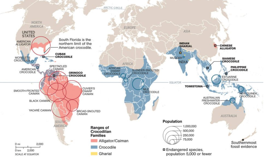 파란색: Crocodile (아프리카, 아시아 등 다양)