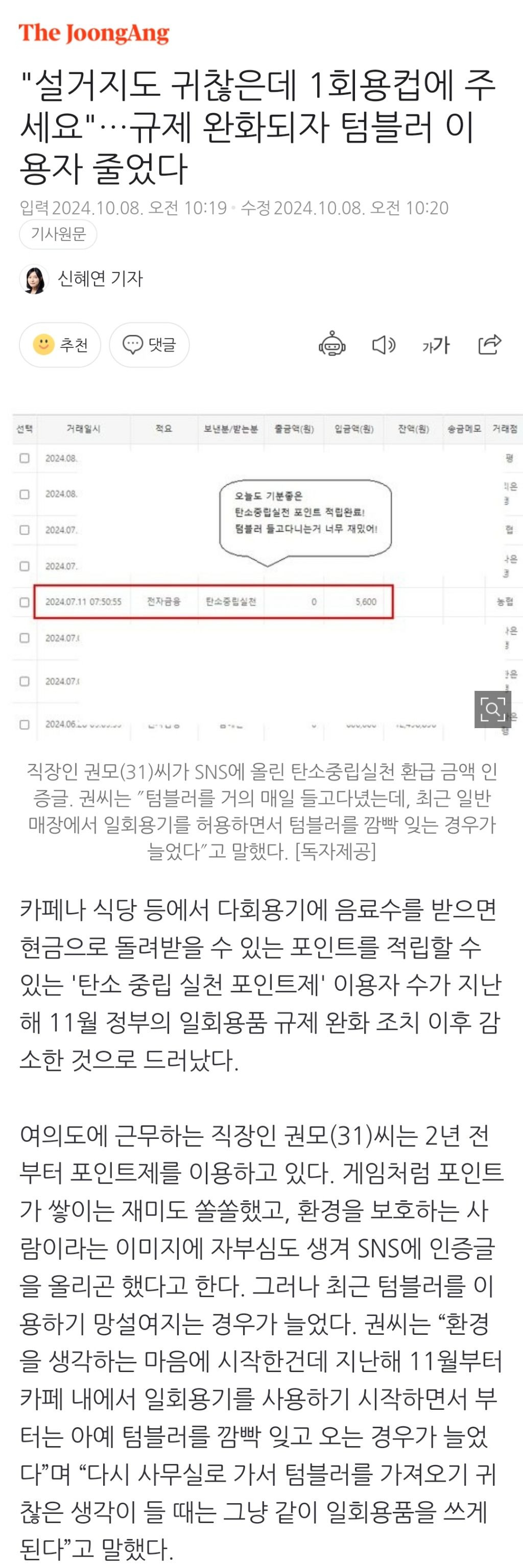 작성자세상살이힘들다 작성시간 24.10.11 난 계속 텀블러쓸거임ㅠ 일회용품 쓰는 사람들은 제발 좀 바뀌었으면..