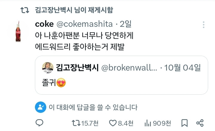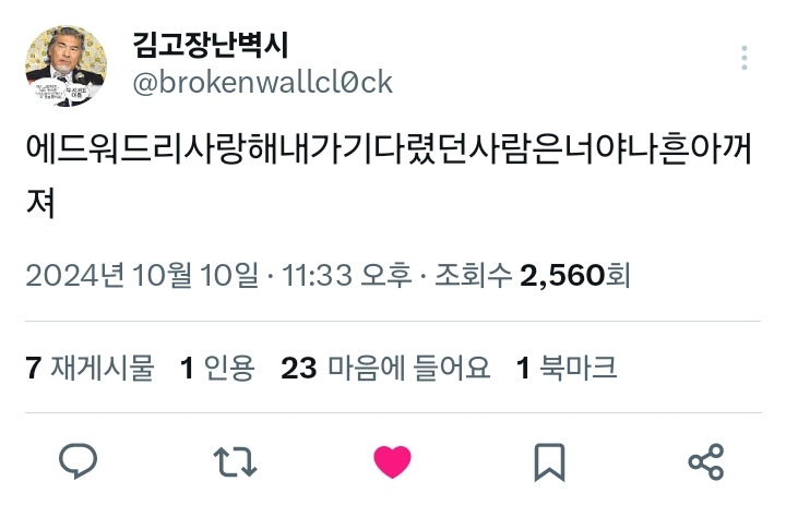 — 김고장난벽시 (@brokenwallcl0ck) October 4, 2024