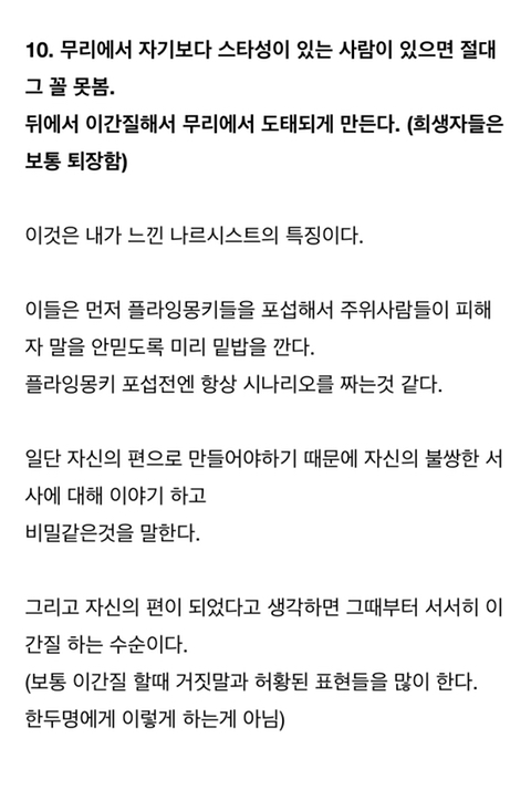 나르시시스트를 괴롭히는 사람이 오히려 나르시시스트니까!